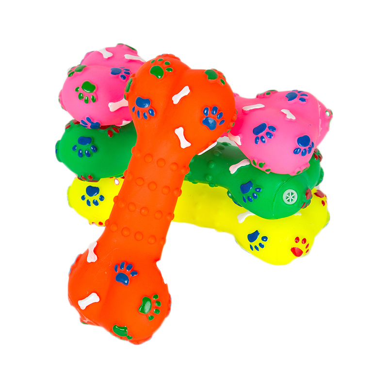 Brinquedo de Vinil em formato de Osso com Patinhas – colorido, leve e ideal para cães pequenos que adoram morder e brincar com segurança.