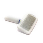 Rasqueadeira grande com cerdas metálicas flexíveis, ideal para cães de médio e grande porte. Remove pelos soltos e desembaraça com eficácia.
